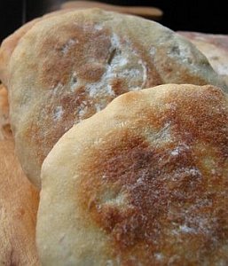 - Dispón los panes planos en la tela de cocción o en una bandeja de horno cubierta con papel sulfurizado, déjalos reposar unos 30-40 minutos y palos con aceite de oliva (también se puede añadir entonces un poco de sal gorda).