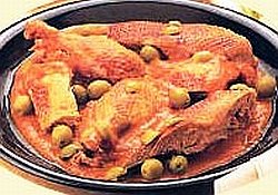 Para servirlo, se despieza en una bandeja y se reparte sobre él como salsa al relleno y las aceitunas enteras.