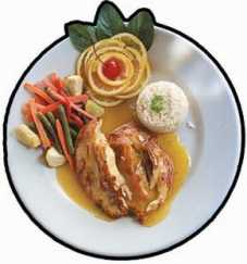 Vertemos en la sartén el jugo del adobo junto con la ralladura de 1 naranja, y a fuego lento y removiendo con una cuchara, reducimos hasta obtener una buena salsita, y que a continuación verteremos sobre las pechugas.